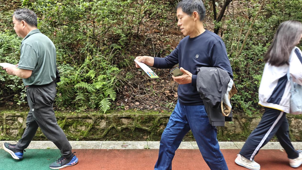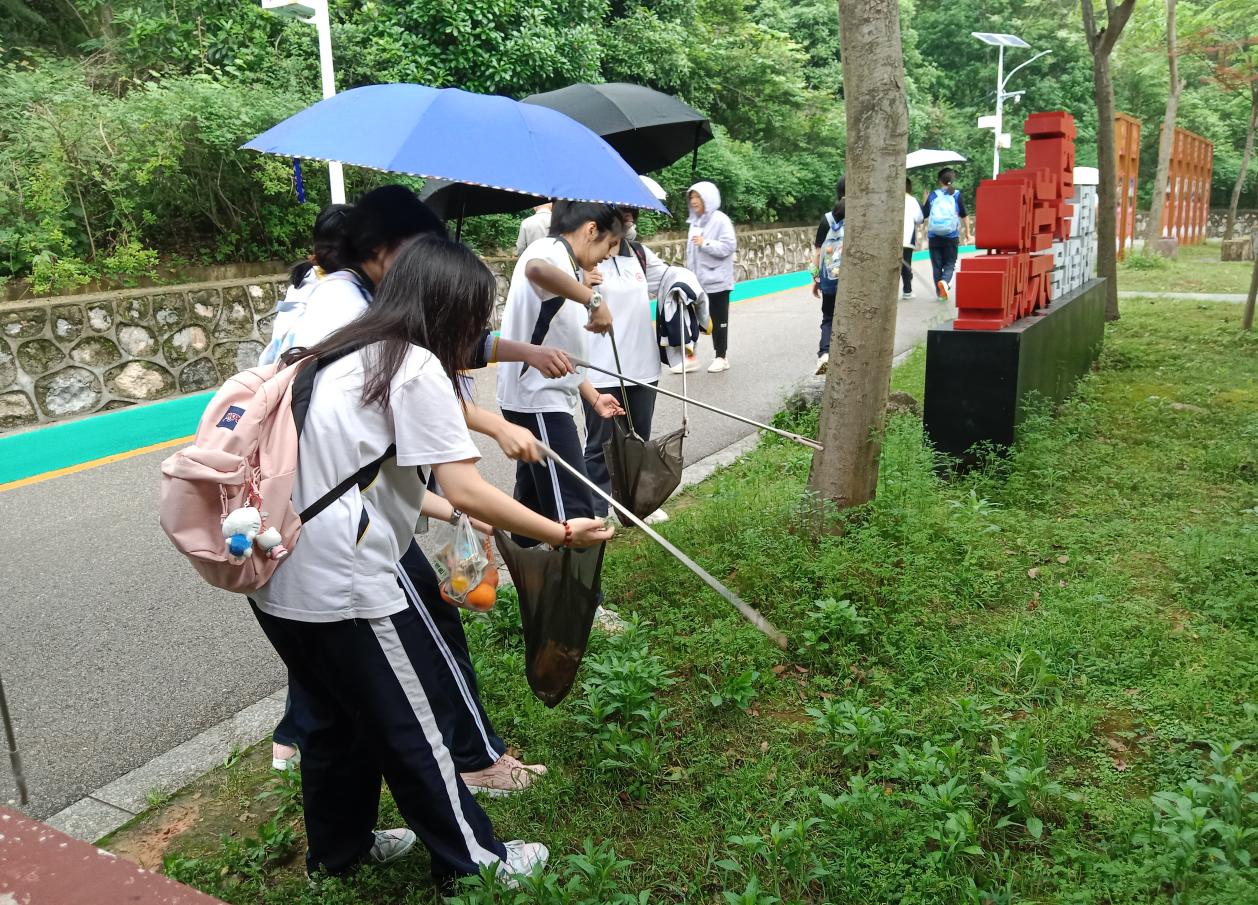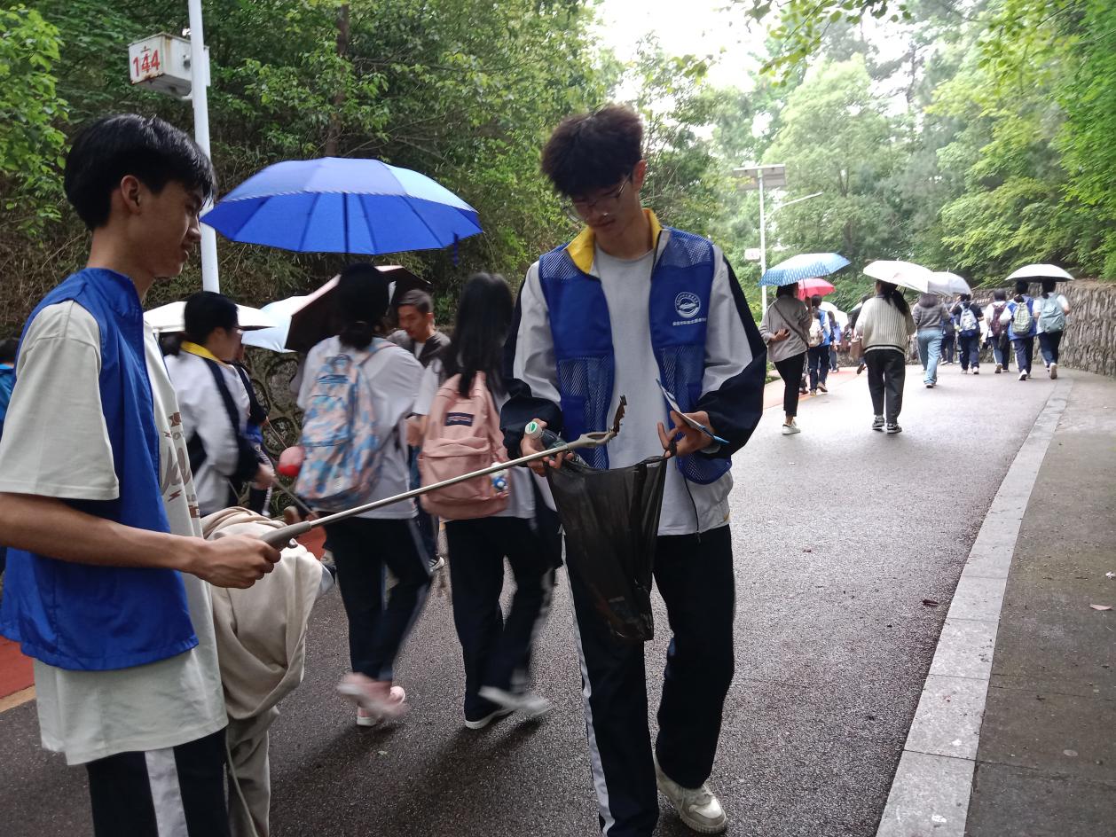 隨后,學生們在志愿者的帶領下,環公園徒步一圈。在徒步過程中,大家不僅欣賞到了珠山公園的美景,更重要的是,每個人都手持垃圾夾與垃圾袋,認真撿拾沿途遺漏的垃圾。無論是細小的紙屑還是廢棄的塑料瓶,都被他們一一撿起,放入垃圾袋中。