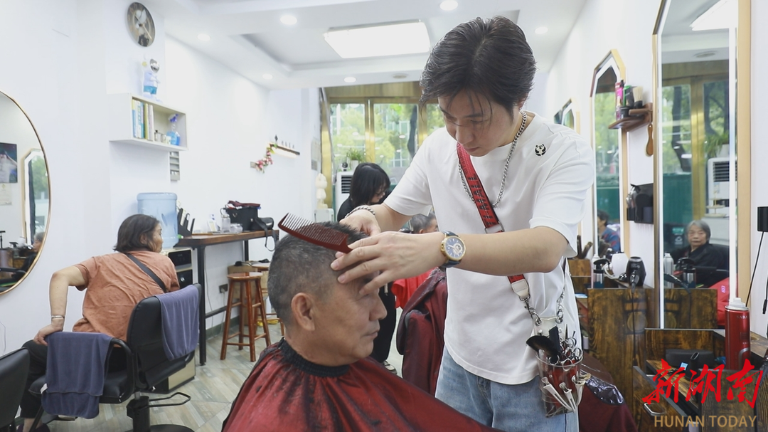 在懷化市劉霖第一街,煌尚美發店發型師阿杰有個堅持了14年的“老規矩”:每周一上午,為60歲以上老人免費理發。每周一早上10點開始,老人們有序拿號,阿杰迅速投入忙碌的理發工作,5000多個日夜里,阿杰用一把剪刀書寫守護“夕陽紅”的溫暖故事。