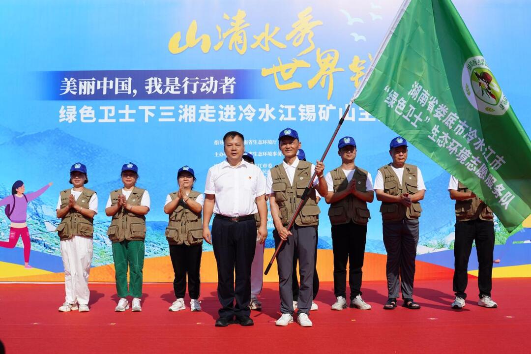活動現場,與會領導還為冷水江綠色衛士生態環境志愿服務隊進行了授旗。