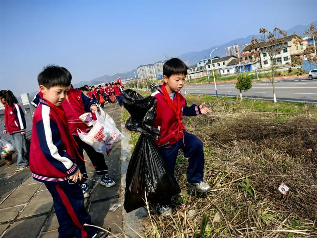 在激昂的氛圍中,凈堤行動(dòng)正式拉開帷幕。陽湖坪小學(xué)的孩子們化身“綠色小衛(wèi)士”,手持垃圾夾與垃圾袋,沿著河堤認(rèn)真清理垃圾。在校長、老師們和公益組織成員的帶領(lǐng)下,不放過任何一個(gè)角落,將煙頭、紙屑、塑料瓶等一一撿起,分類投放。