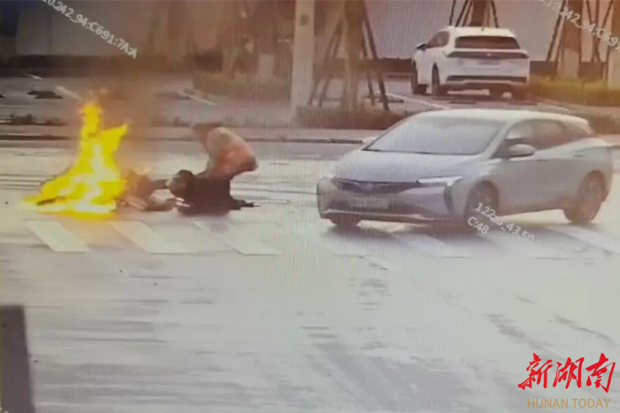 《摩托車失控起火!岳陽縣這位67歲老人沖了上去……》