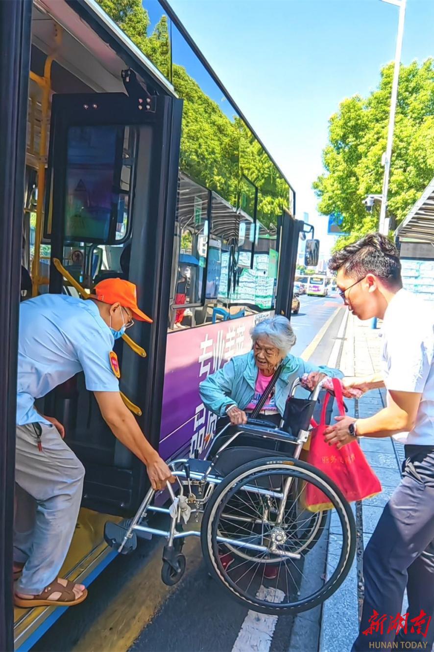 長沙公交車站,一名坐輪椅的老人準備乘車時,兩名工作人員立即上前,合力將輪椅平穩抬上公交車。這一暖心場景,無聲傳遞著社會對老年人的細致關懷,勾勒出 “老年友好型”社會的溫情圖景。
