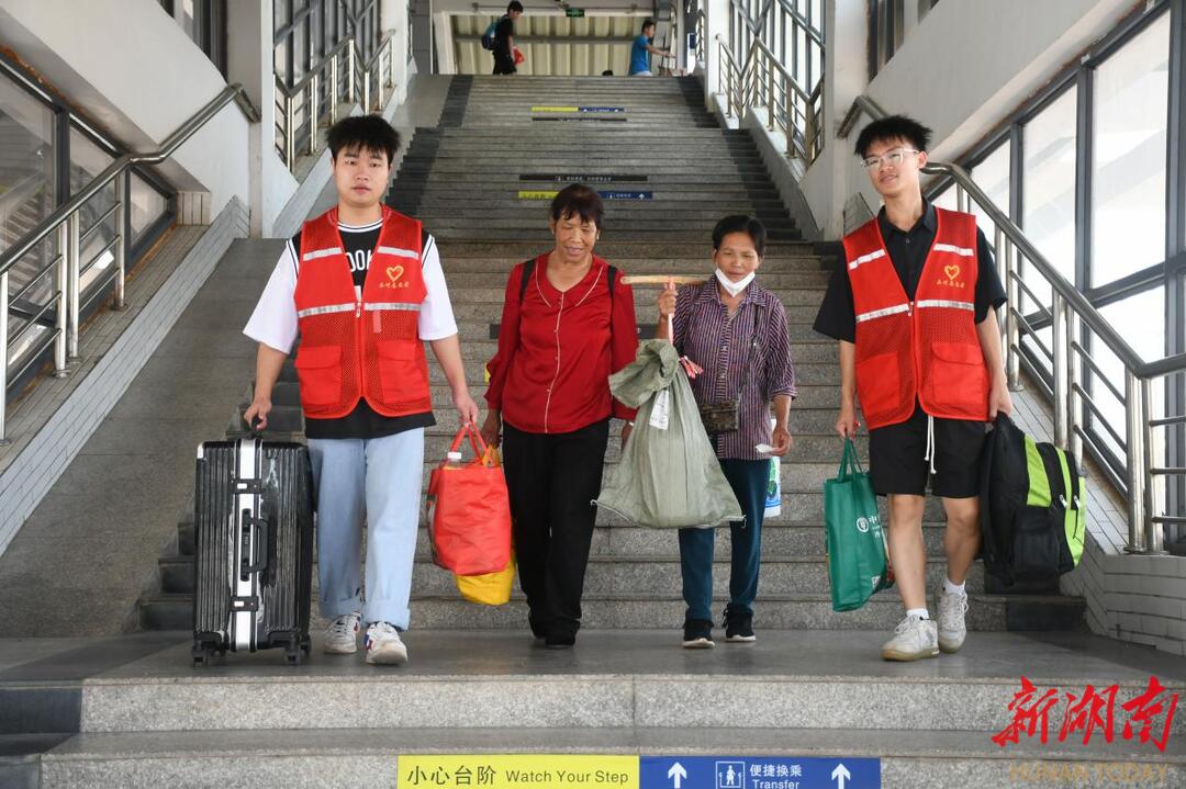 在永州火車站,永州職業技術學院“周末公益”青年志愿者穿梭于候車人群,主動為攜帶重物的人群提供幫扶,用雙手接過行李、貼心引導乘車,以溫暖行動助力旅客順暢出行,讓善意在車站流動。