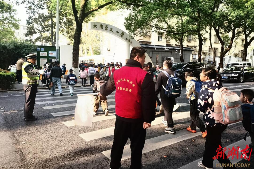 每天上下學時段,小學校門口就涌動著溫暖的守護力量。新時代文明實踐志愿者身穿紅馬甲,在斑馬線前耐心引導孩子們有序通行,執勤民警則用堅實的手掌牽起一雙雙小手,護送他們安全穿越車流。從“志愿紅”到“警察藍”,不同色彩的身影交織成校園門前的安全防線,讓“大手牽小手”的溫暖場景成為日常,也讓社會各界攜手為孩子們筑牢成長的安全港灣。