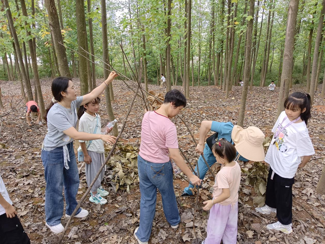 本次研學(xué)活動以“探索自然,發(fā)現(xiàn)自我”為主題,活動在課程設(shè)置上兼顧知識性、趣味性與實(shí)踐性,分時(shí)段開展特色環(huán)節(jié)。上午的“庇護(hù)所搭建”研學(xué)環(huán)節(jié),不僅鍛煉了孩子們的動手能力,更通過自然導(dǎo)師的專業(yè)講解,使其深刻理解了棲息地對生物生存的重要性及生態(tài)平衡的原理。下午的“趣味定向?qū)殹眲t是一場生動的生物多樣性調(diào)查實(shí)踐,孩子們在志愿者引導(dǎo)下,運(yùn)用指北針、任務(wù)地圖等研學(xué)工具,通過葉片形態(tài)辨識、自然聲音記錄、植物氣味分辨等任務(wù),系統(tǒng)訓(xùn)練了自然觀察方法與科學(xué)記錄能力。