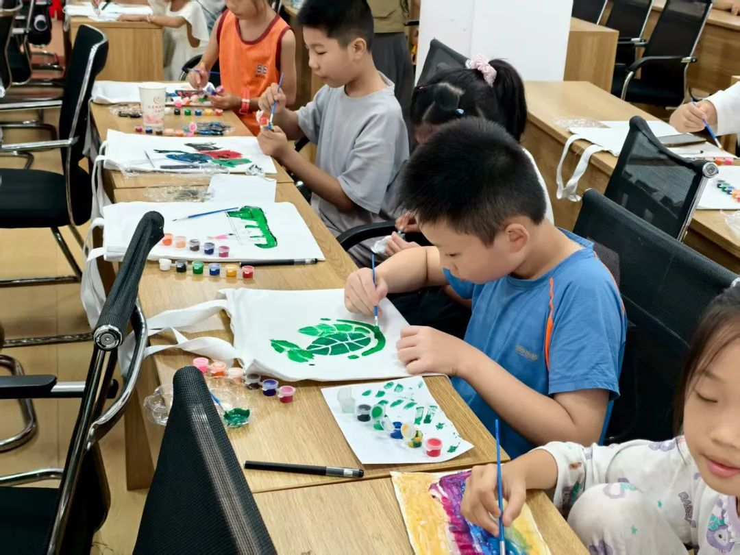 “我希望通過畫作告訴大家要保護海洋環境,讓魚兒有干凈的家。”參加活動的9歲小朋友展示著自己繪制的海洋主題帆布袋說道。孩子們的作品不僅充滿童真創意,更傳遞出保護生態環境的共同愿望。