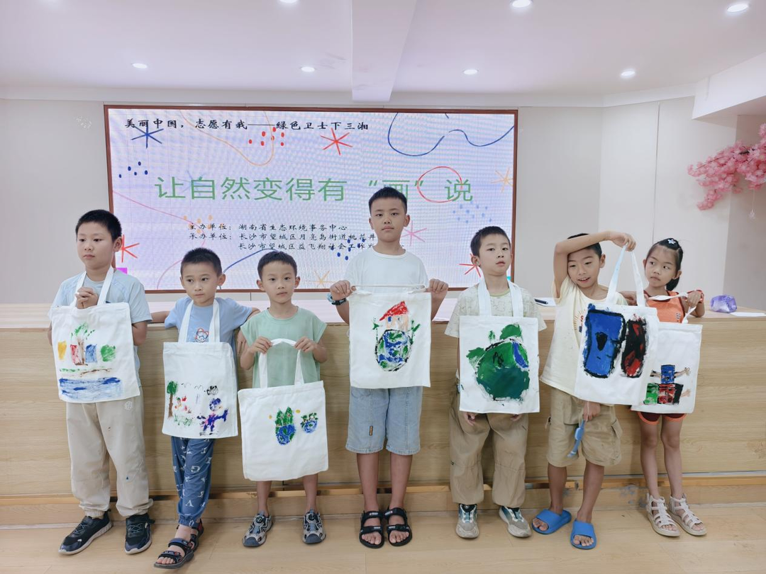 8月22日上午,在省生態環境事務中心指導下,長沙市望城區益飛翔社會工作發展中心聯合望城區月亮島街道桃花井社區,開展“讓自然變得有‘畫’說——環保設計營”主題活動。活動通過“創意繪畫+環保教育”相結合的方式,引導青少年關注生態環境,用藝術表達對自然的熱愛與保護。