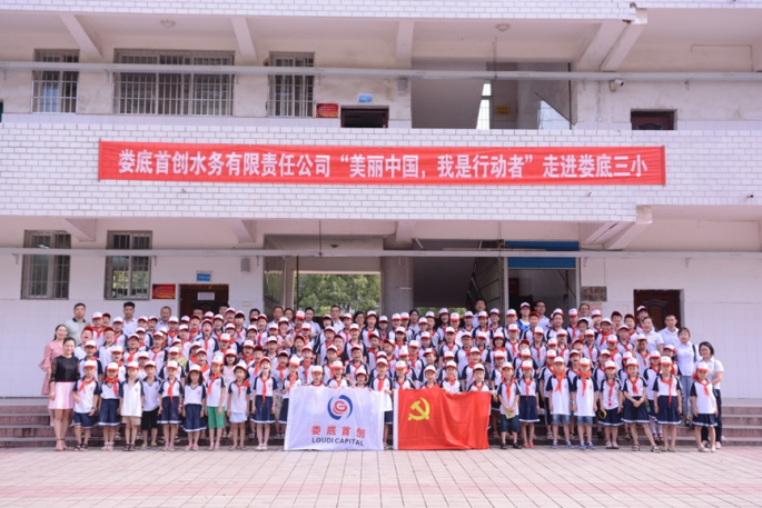 2018年6月19日,來自婁底首創水務有限責任公司二十名“水環境衛士”組成環保宣教團,走進婁底市第三完全小學,舉辦“美麗中國,我是行動者” 環境保護主題宣傳走進校園活動。參加此次環保宣教活動包含婁底第三完全小學班級73個,教職工288人,總參加人數達4936人。