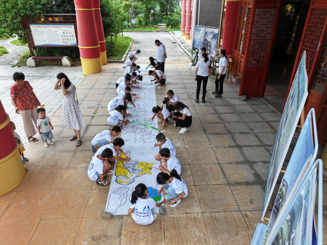在志愿者協(xié)助下,青少年們以濕地為主題自由創(chuàng)作書法、繪畫作品。水彩暈染的碧波、彩鉛勾勒的飛鳥、黏土塑造的蘆葦叢……百余幅作品匯聚成對(duì)自然之美的禮贊。同時(shí),學(xué)生團(tuán)隊(duì)協(xié)作完成了十米生態(tài)長(zhǎng)卷,用畫筆勾勒出心中的綠水青山。