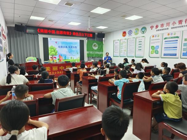 8月28日上午,在寧鄉(xiāng)市河小青行動(dòng)中心響起清脆的童聲,一場別開生面的環(huán)保實(shí)踐活動(dòng)正在這里開展——"美麗中國 志愿有我 綠色衛(wèi)士下三湘"——《打造生態(tài)科普基地 守護(hù)美麗示范河湖》項(xiàng)目之垃圾分類知識(shí)宣講活動(dòng)。此次活動(dòng)吸引了50余名學(xué)生參與,旨在通過沉浸式學(xué)習(xí)垃圾分類知識(shí),培養(yǎng)孩子們的環(huán)保意識(shí)。