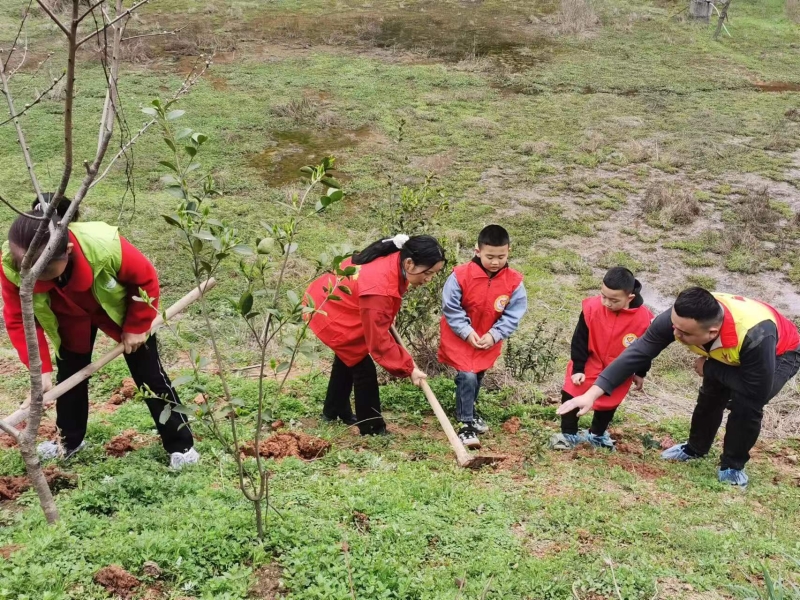 在此之前,桃江環保志愿者協會灰山港分會在當地茶葉專業合作社基地也開展了義務植樹活動。來自志灰山港各地的志愿者們二人一組,分工合作,挖坑扶樹,茶葉基地處處熱火朝天,“綠馬甲”點綴其間往來穿梭。兩個小時后,100棵紫薇花樹迎風挺立在茶株空閑處,恰如一個個綠色的夢想在山谷深處萌芽,遠處各色各樣的櫻花在微風中搖戈著向志愿者們點頭示意。