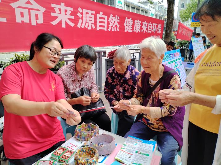 志愿者們成為活動中的一道亮麗風景線。他們不僅向居民發(fā)放環(huán)保宣傳單,還現(xiàn)場示范用廢舊撲克牌制作收納盒,倡導踐行變廢為寶的環(huán)保理念。其中,有趣的互動形式引得不少居民踴躍參與,親身體驗環(huán)保創(chuàng)意的樂趣。考慮到高考臨近,志愿者們還別出心裁地制作了象征“一舉奪魁”的向日葵花朵,贈送給家有高考生的家長。既為考生送上真摯祝福,也將環(huán)保理念與美好寓意巧妙融合,傳遞出別樣的溫暖。