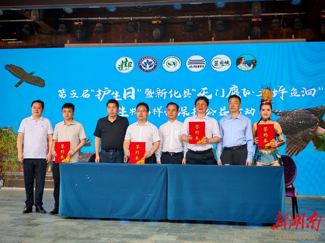 活動現場,300余名政府代表、專家學者及志愿者共同見證了“新化縣(天門鄉)野生動物救助站共建”的簽約啟動;環保志愿者、企業等代表共同宣讀了愛鳥護鳥、保護生物多樣性倡議;對第八屆“圣輝·護生功德獎”進行表彰。