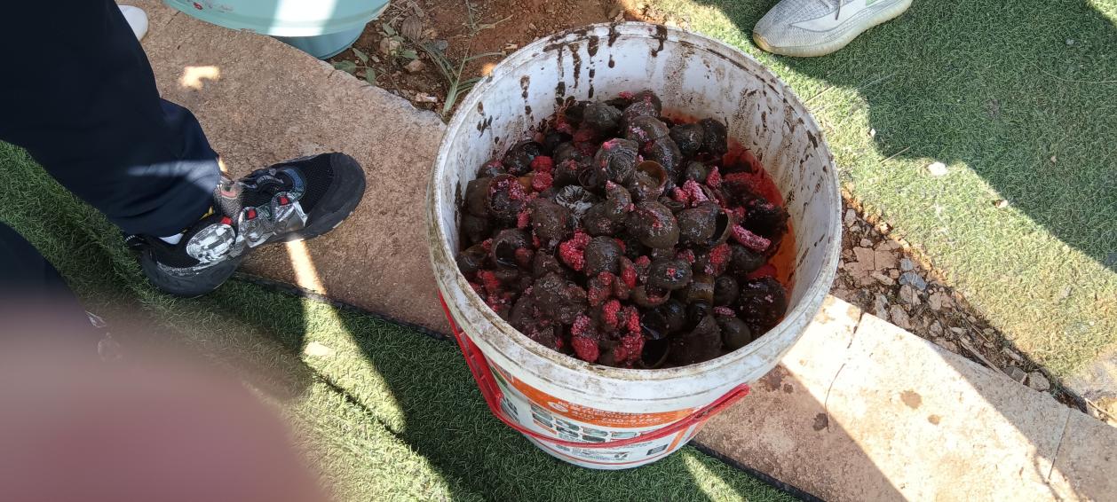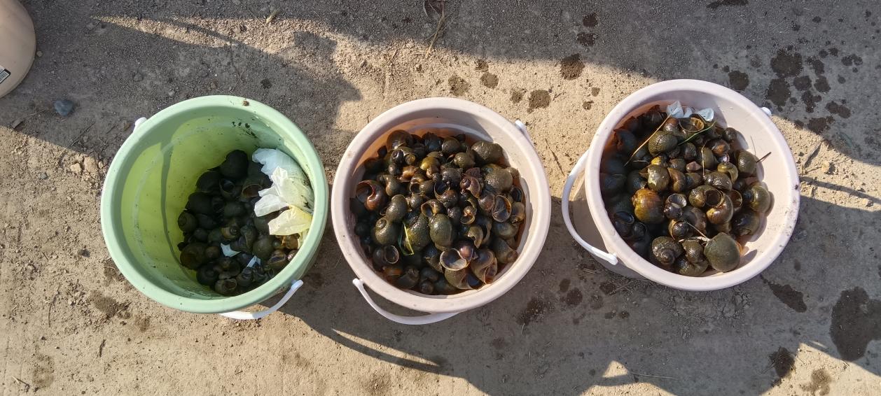 兩場活動共清理福壽螺及螺卵上百斤,全部交由兩個鄉鎮工作人員進行了科學填埋處理。