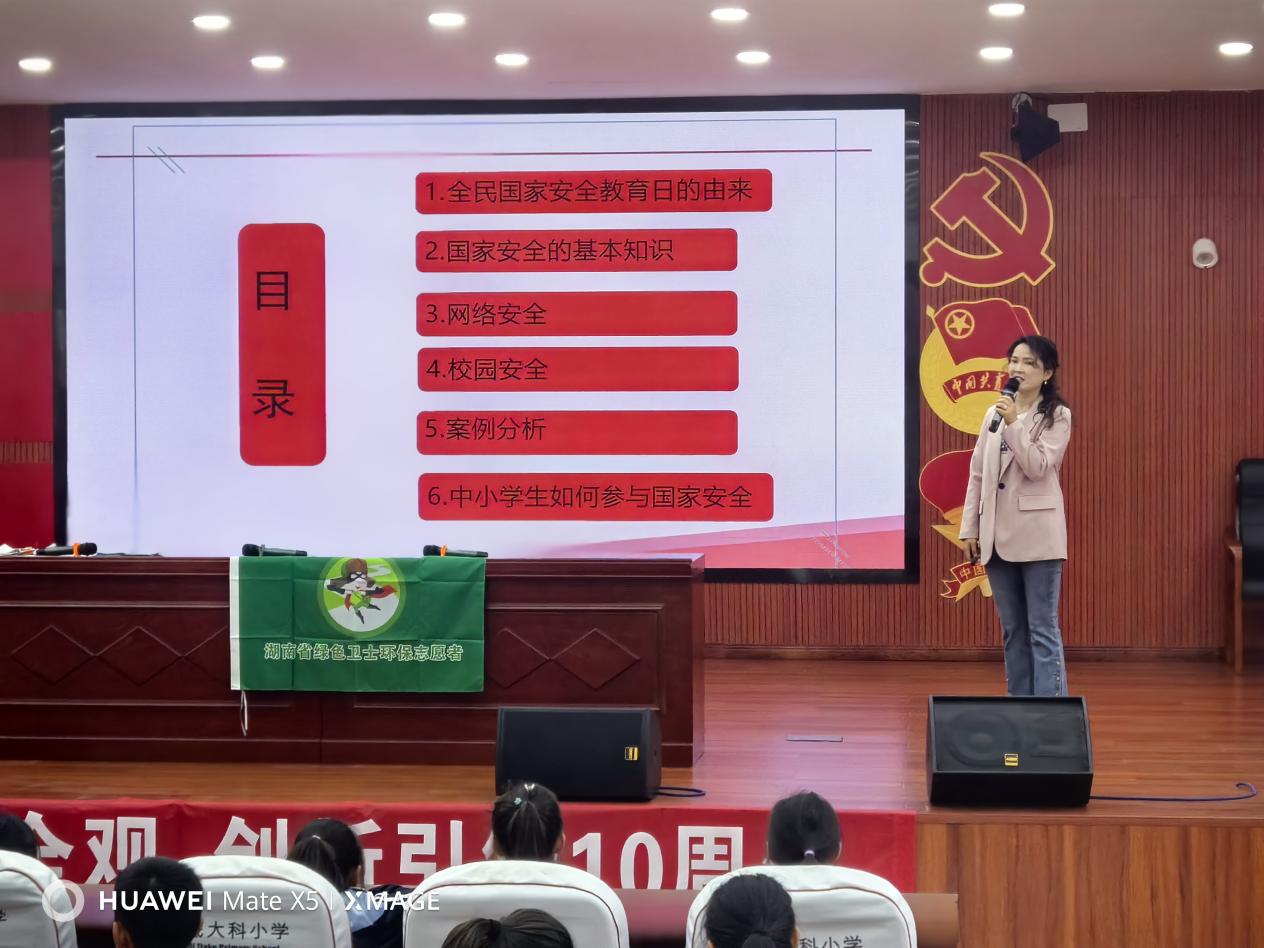 每年的4月15日是全民國家安全教育日。為深入貫徹落實總體國家安全觀,提高全民國家安全意識,特別是加強青少年對網絡安全和校園安全的認識,婁底市環保志愿者協會在婁底市生態環境局的指導下,于4月10日和11日分別在大科小學和婁底振翩學校開展全民國家安全教育宣講活動。此次活動以網絡安全和校園安全為重點,通過生動的案例,教育引導學生增強自我保護意識,積極維護國家安全。