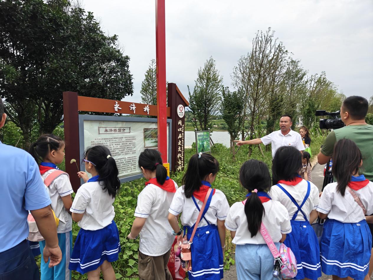 活動(dòng)伊始,村委的陳小文書(shū)記從一張1958年的舊報(bào)紙給大家介紹了華勝村(原西陽(yáng)鄉(xiāng)紅星社)如何在黨與政府相關(guān)部門(mén)的領(lǐng)導(dǎo)下從曾經(jīng)的豬牛糞堆滿、蚊蟲(chóng)遍布、傳染病流行的村落蛻變成如今的新農(nóng)村建設(shè)環(huán)保示范點(diǎn)和山美水美的濕地公園,并帶領(lǐng)大家實(shí)地參觀了濕地公園。