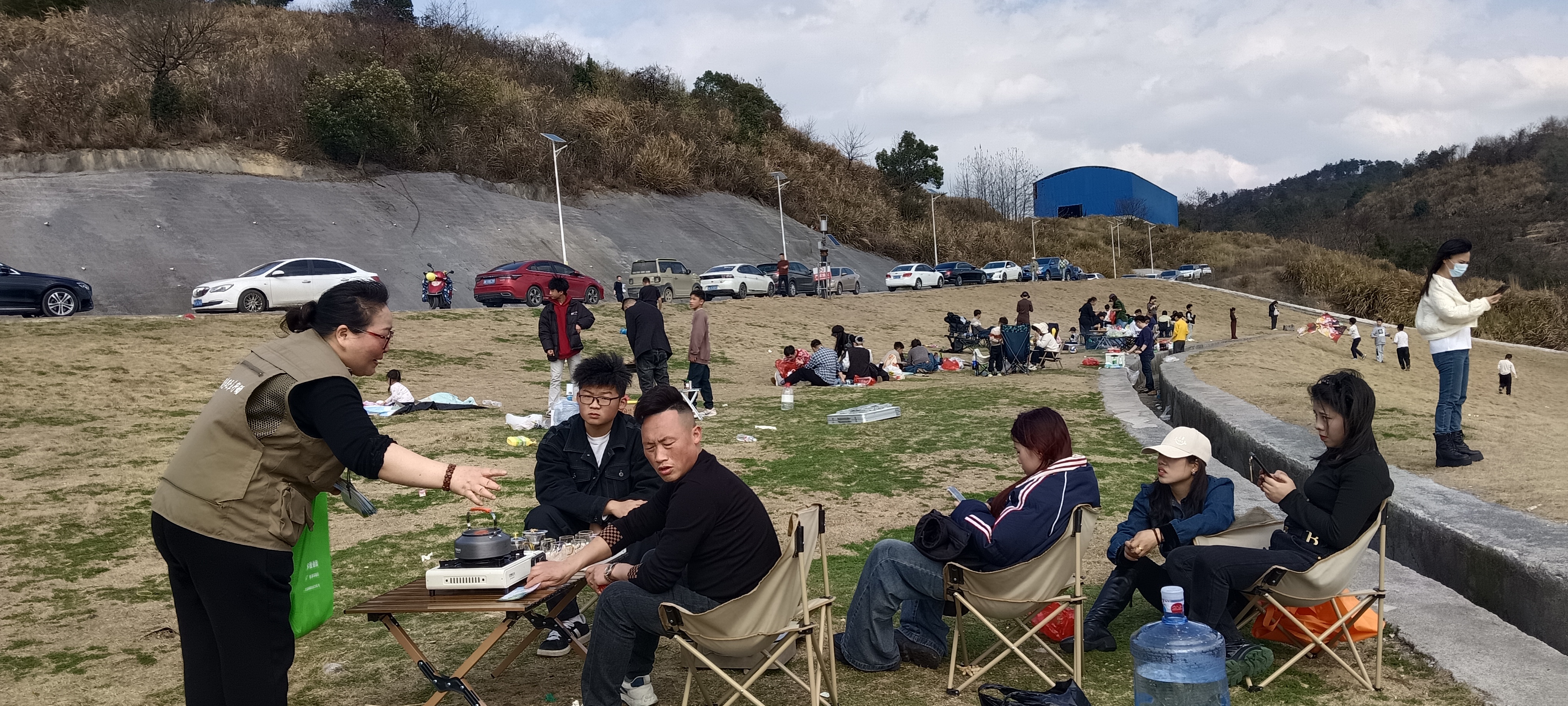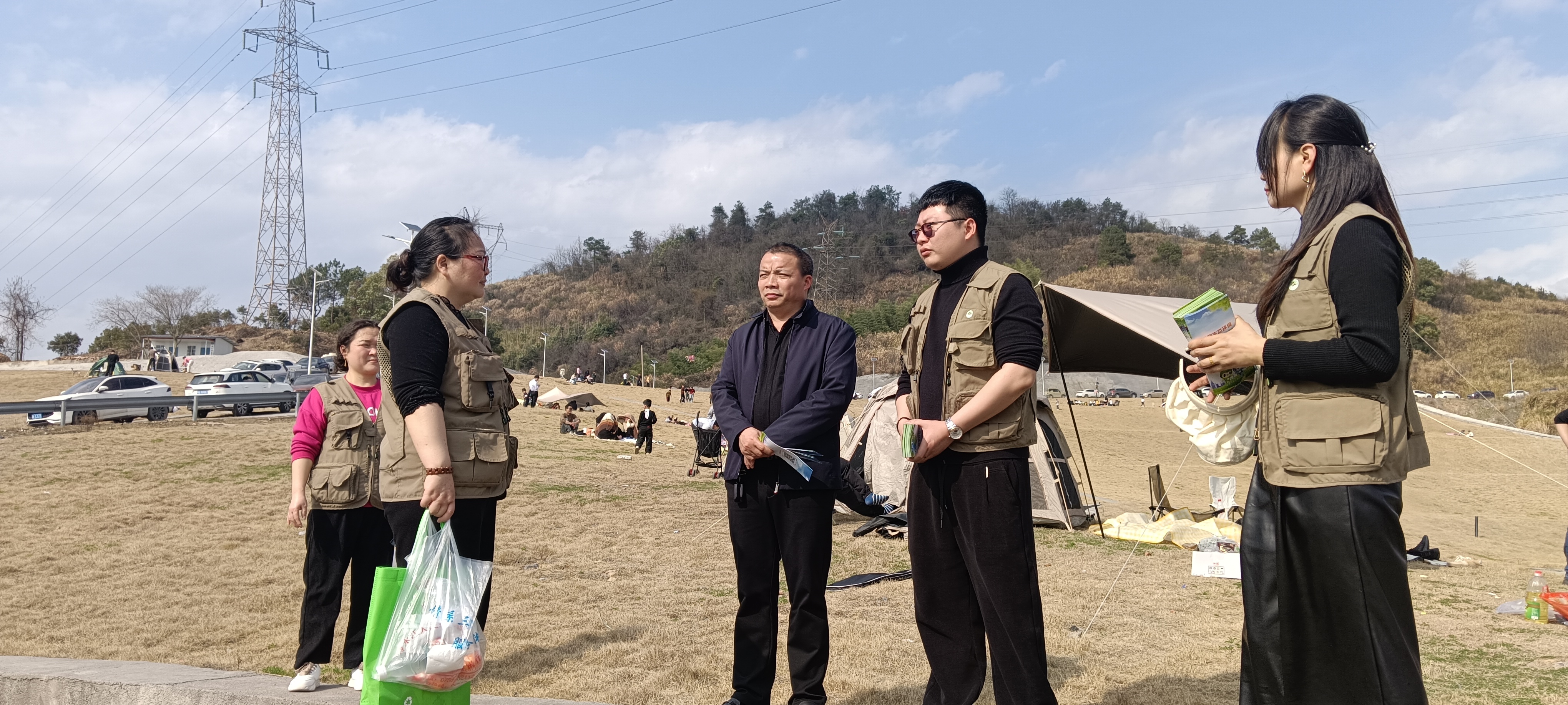 當日下午陽光明媚,清風微吹。省綠色衛士冷水江市大隊的志愿者與冷水江街道辦事處工作人員來到“永興草原”中心區域,面對現場游客開展生態環境保護的宣傳教育與勸導工作,發放由冷水江人民法院印發的“公民生態環境行為規范十條”,并就“永興草原”制定相對應的常態化管理規定等事宜進行探討。
