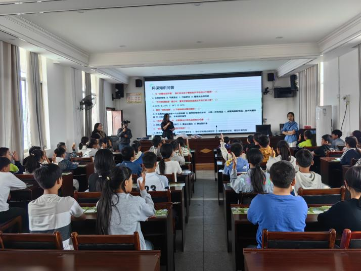 宣講結束后,緊張有趣的“環保普法知識競賽”接棒登場。題目緊扣宣講內容,涵蓋環保法規、常識及小妙招,同學們憑借剛學到的知識積極作答,現場掌聲與歡呼聲不斷。工作人員為獲勝學生及表現突出者送上課本、筆、糖果等小禮品,以鼓勵大家持續關注環保、學習環保法的熱情。活動最后,工作人員向全體學生發放了環保普法宣傳手冊,主持人呼吁:“從今天起,把‘隨手做環保’融入日常,用行動守護我們的家園!”