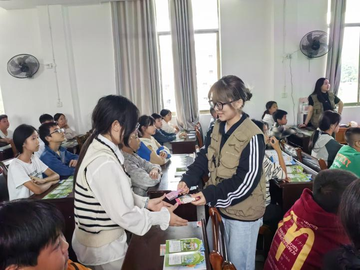 下午,“環境普法宣傳進校園”活動在黃茅園鎮合田學校如期上演,同樣受到師生們的熱烈歡迎。從普法宣講到知識競賽,從禮品發放到手冊傳遞,環節設置與龍潭鎮中學一脈相承,讓合田學校的學子們也沉浸式學習了環保法治知識。活動結束后,小元同學舉著獲得的小禮物開心地說:“今天我答對了兩道題,拿到了獎品,還知道了好多保護地球的方法,特別開心!”