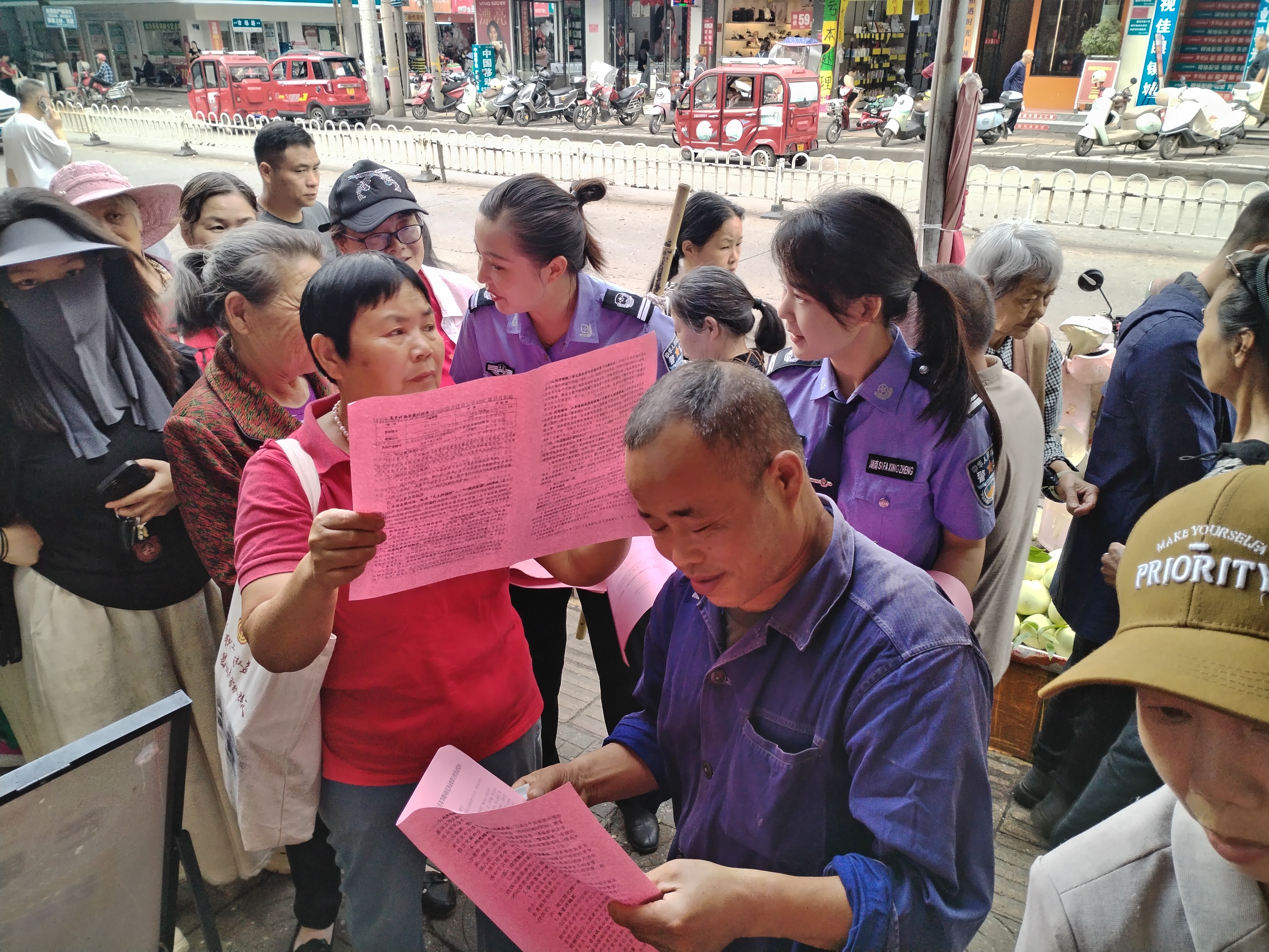 準備完畢,工作人員與志愿者組成宣傳隊,在溆浦縣朝陽路沿線,面向過往行人、商鋪經營者及菜市場攤主開展流動普法宣傳。通過發放《民法典與生態環境》宣傳折頁、面對面現場講解等方式,重點普及《民法典》中“污染環境致損侵權責任”“生態環境修復責任”等條文。宣傳隊員以通俗易懂的語言解釋破壞生態的法律后果,同時,宣傳保守國家秘密相關法律知識,強化公眾國家安全意識。
