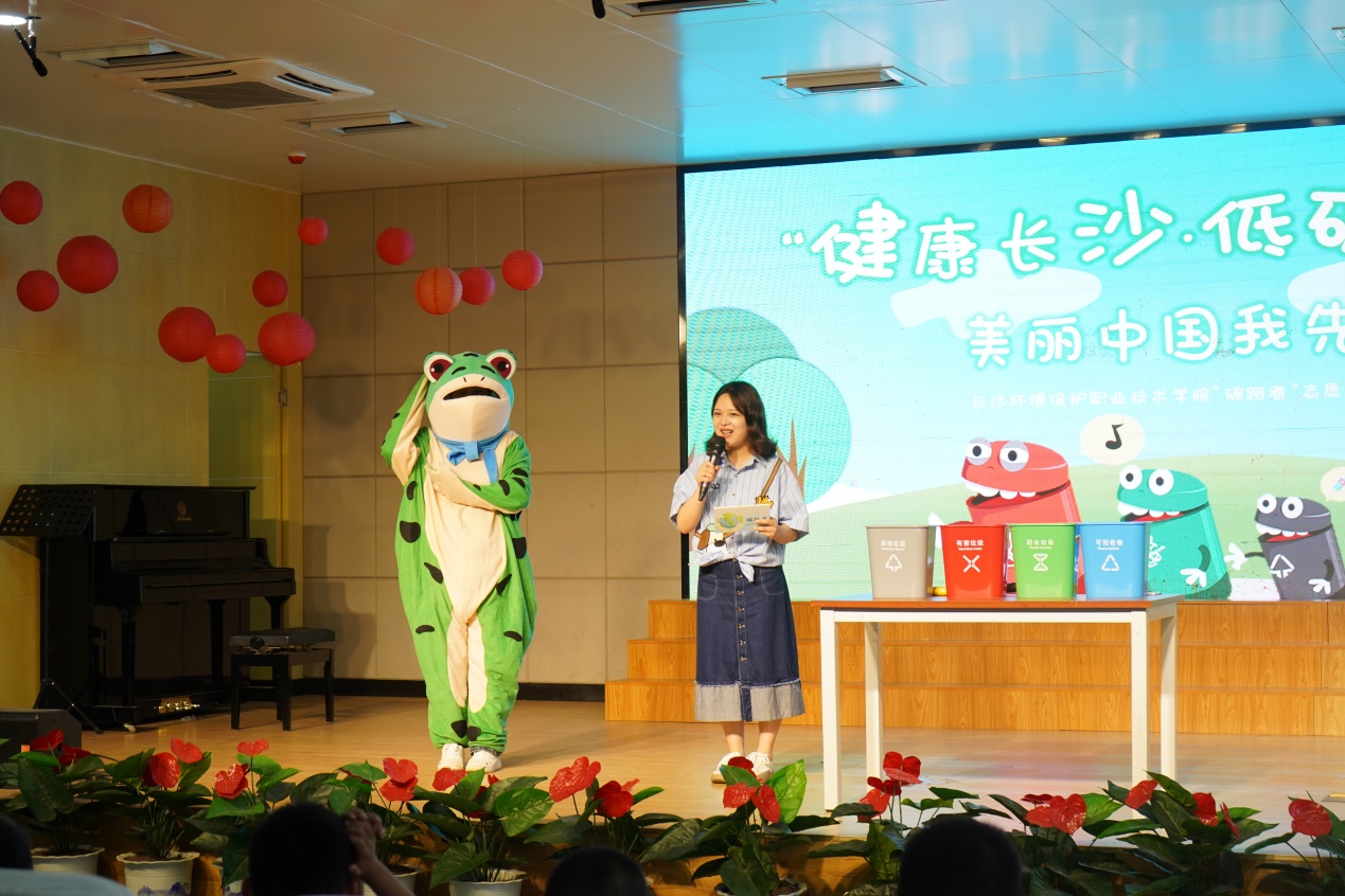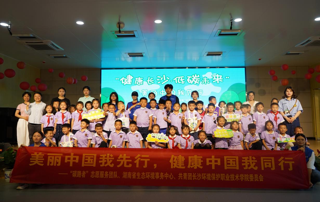 “碳路者”志愿服務團隊在六五環境日之際,聯合湖南省生態環境事務中心、共青團長沙環境保護職業技術學院委員會走進雨花區和平小學,給200名小學生們帶來了一場關于環境健康的低碳課堂。