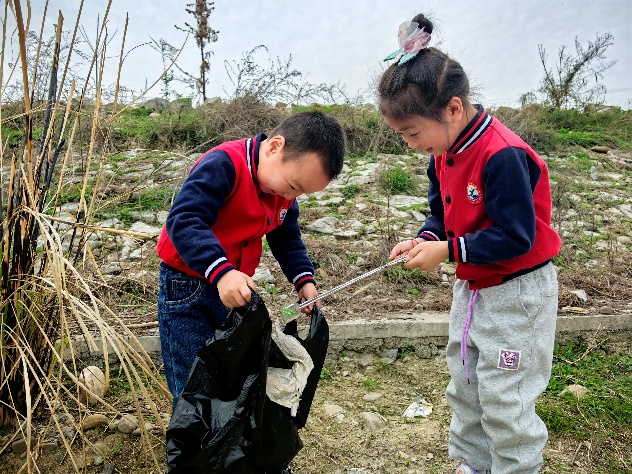 大班幼兒在繪畫結束后,與大庸橋街道、立功橋社區以及當地的居民共同參與了撿垃圾活動,以實際行動踐行環保理念。