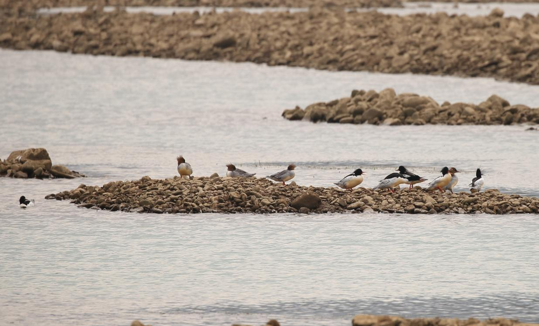 中華秋沙鴨距今已在地球上生存了1000多萬年,是國家一級重點保護動物,全球不超過5000只,數量極其稀少,是國際瀕危物種,被譽為“鳥中大熊貓”。中華秋沙鴨是一種對環境因子極其敏感的鳥類,對生存環境極其挑剔,又被稱作“生態試紙”。工作人員從去年11月中旬至今年3月底開展持續監測調查,初步確定中華秋沙鴨在此越冬。中華秋沙鴨都是以家族方式活動,此次共監測到10只中華秋沙鴨,6雄4雌。