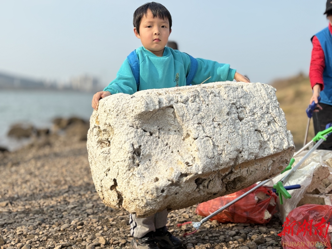 湘潭民間河長高新中隊組織志愿者及家人,以大手牽小手的形式,在湘江邊為母親河“梳妝”,以實際行動號召全社會共同保護母親河。