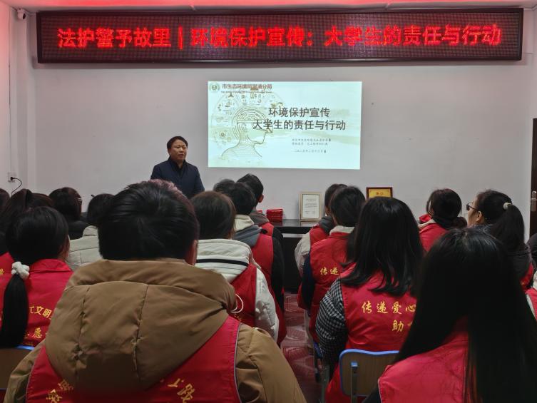 為提升新時代大學生在守護綠水青山的意識, 2 月 13 日,在具有深厚革命歷史底蘊的溆浦縣,懷化市生態環境局溆浦分局攜手溆浦縣省綠色衛士志愿服務隊,面向寒假返鄉的溆浦籍大學生,開展了一場以 “環境保護宣傳:大學生的責任與行動” 為主題的生態環保知識宣講活動。