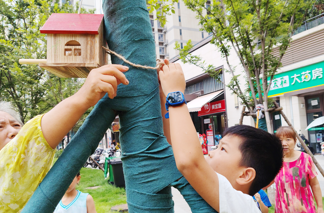 “希望小鳥能快點搬進來住。”青少年們在志愿者的帶領下將自己親手裝飾的鳥屋安裝在小區的和社區公園的樹上。活動現場,志愿者還帶領社區青少年一起向過往居民和商戶經營者發放了愛鳥護鳥宣傳折頁,普及鳥類保護知識,呼吁大家不傷害鳥類、不破壞鳥類棲息地,共同參與到愛鳥護鳥的行動中來。