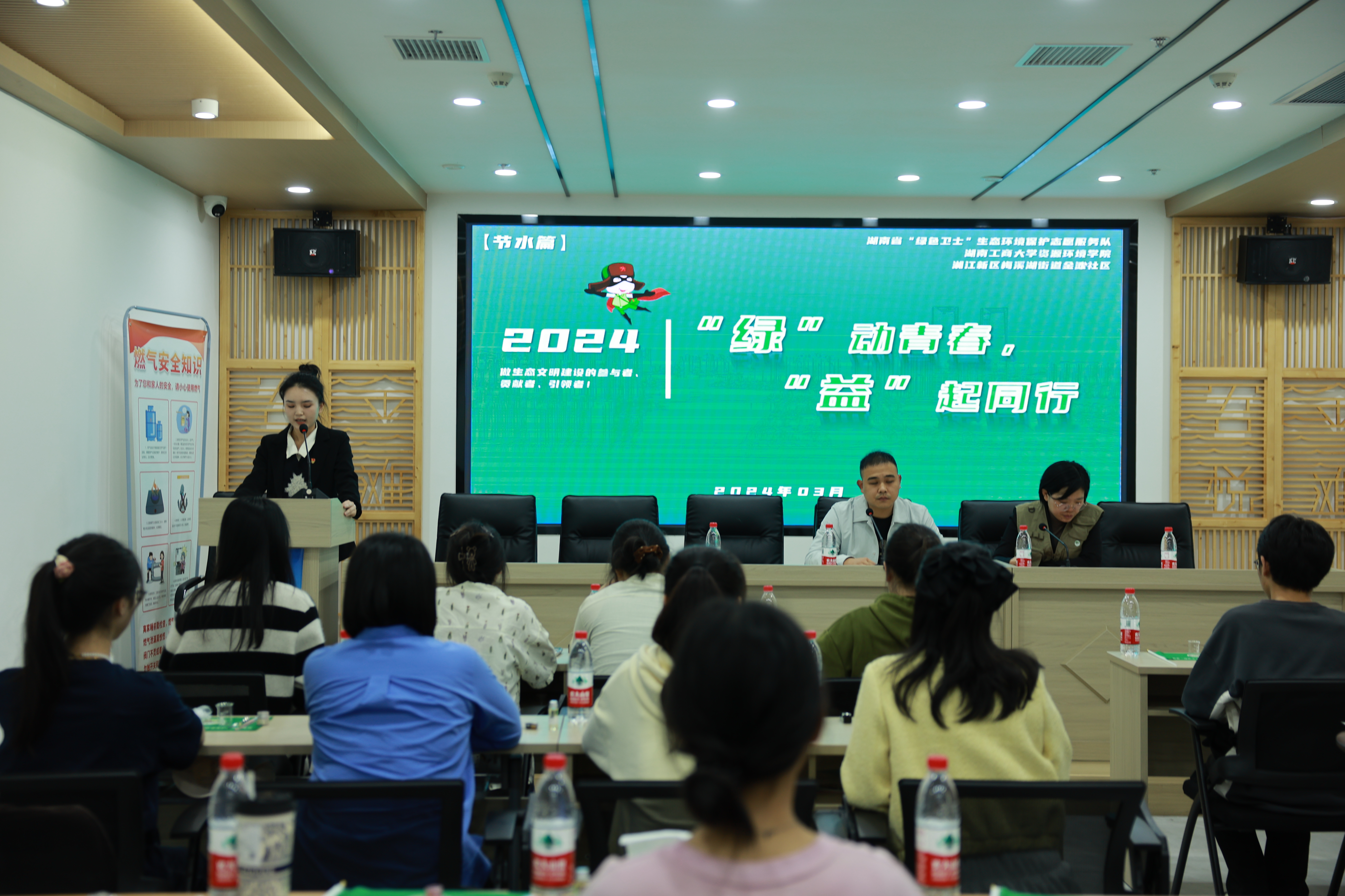 3月29日下午,湖南工商大學資源環境學院綠色衛士·智“探”先鋒志愿服務隊聯合湖南省生態環境事務中心、湘江新區梅溪湖街道金灘社區40余名志愿者,在金灘社區會議室共同開展“綠”動青春,“益”起同行志愿服務項目啟動儀式。