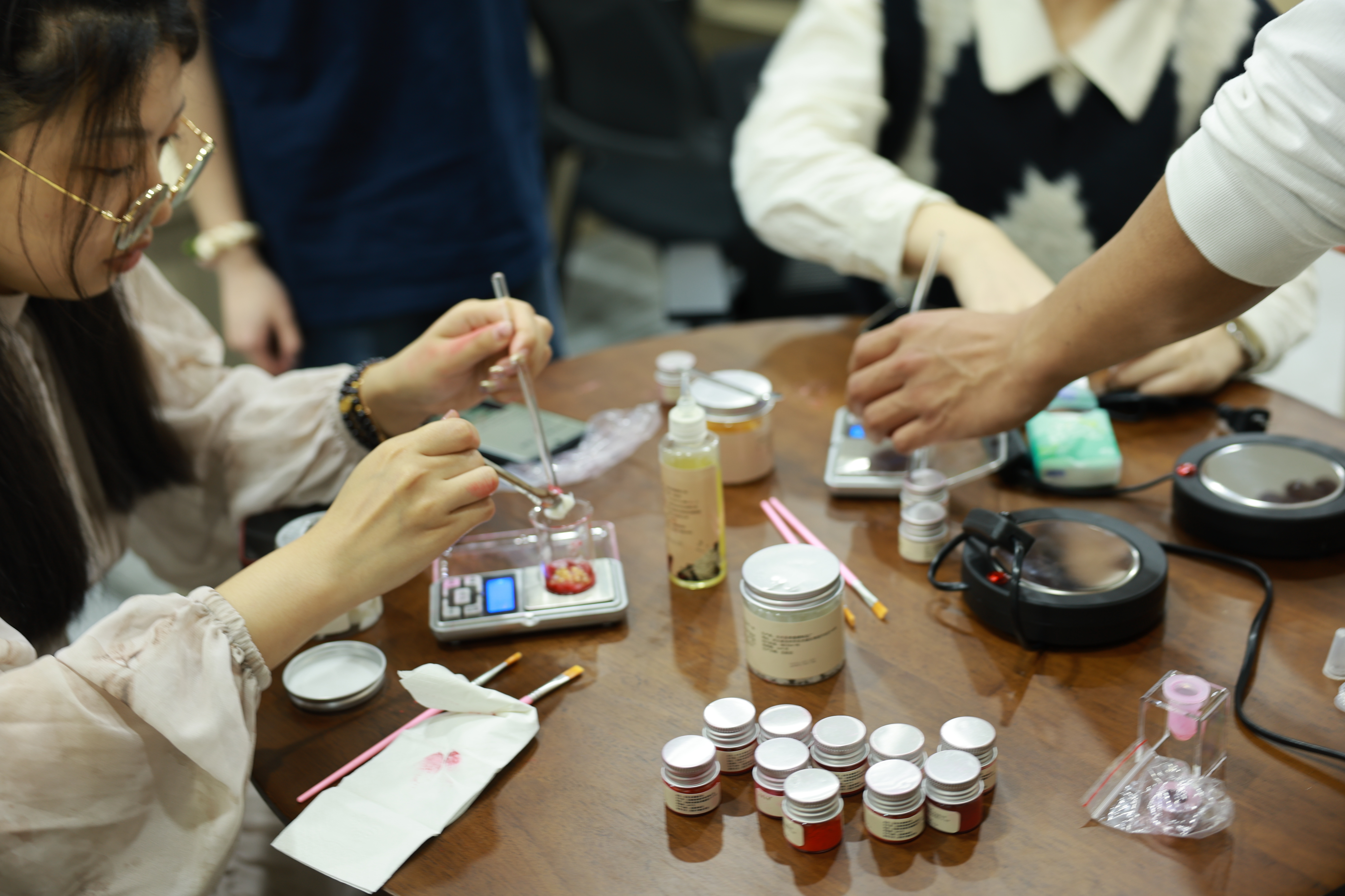隨后,在志愿服務隊成員的帶領下,志愿者們用“火龍果”經過倒模、凝固、脫模等一系列工序,制作了一只“綠色”口紅?!白约鹤龅目诩t沒有科技與‘狠活’,用起來很安心?!眳⑴c活動的志愿者開心地說道。