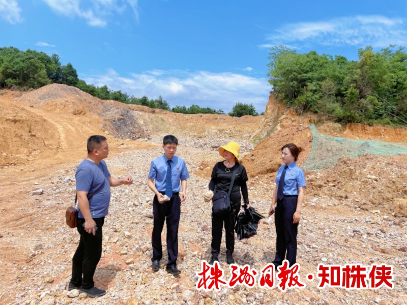 張紀(jì)湘(右二)配合檢察機(jī)關(guān)調(diào)查生態(tài)破壞現(xiàn)場