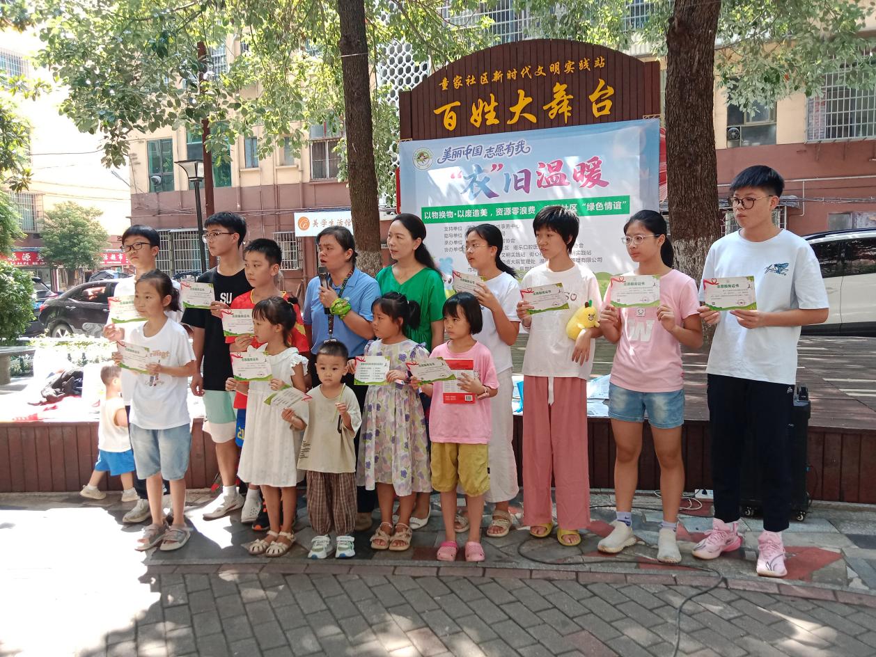 活動(dòng)中,志愿者們始終保持著熱情的服務(wù)態(tài)度,耐心解答居民的疑問(wèn),幫助他們完成物品置換和捐贈(zèng)。居民們也積極參與,互相交流環(huán)保心得,分享閑置物品的故事,整個(gè)社區(qū)前坪充滿了歡聲笑語(yǔ)。參與活動(dòng)的學(xué)生和小朋友還獲得了公益實(shí)踐證書,這不僅是對(duì)他們參與志愿服務(wù)的肯定,更是對(duì)環(huán)保理念的一種傳承。