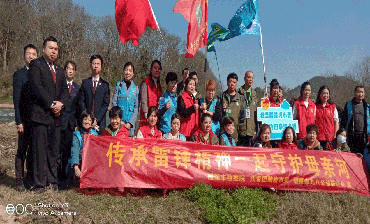 2022年3月9日,為響應市文明辦號召,深入推進“雷鋒家鄉學雷鋒·文明醴陵我先行”志愿服務活動,株洲市綠色衛士淥江大隊聯合醴陵市九八公益聯合會、河流守望者聯合會、醴陵市檢察院、醴陵市餐飲協會開展了一場“傳承雷鋒精神 守護母親河”凈灘活動。