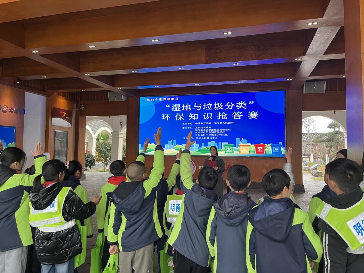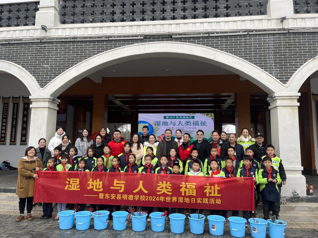 東安縣明德學校攜手紫水國家濕地公園管理局和蒼子嶺社區積極踐行“綠水青山就是金山銀山”的理念,全體黨員和學生志愿者開展“大手牽小手,共護濕地與人類福祉”宣傳實踐活動。