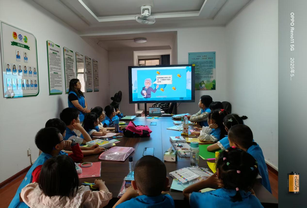 緊接著,志愿老師打開精心準備的 PPT,開始講解《看不見的紐帶:生物多樣性與人類生存》。隨著一張張圖片的展示,一個個生動的案例講解,小朋友們直觀地了解到生物滅絕帶來的巨大危害,明白了每一種生物在自然界中都有著不可或缺的作用。
