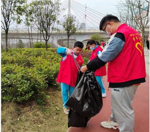 ????3月12日上午,為積極響應“喜迎二十大、永遠跟黨走、奮進新征程”百萬青少年學雷鋒志愿服務的號召,婁底市綠色衛士生態環保志愿者人文大隊與共青團湖南人文科技學院委員會一起組織開展“大手拉小手,保護母親河”為主題的巡河凈灘專項志愿服務活動。