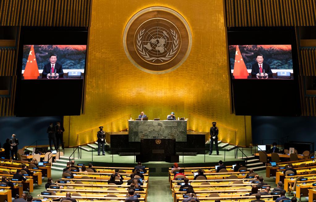 2021年9月21日,習(xí)近平在北京以視頻方式出席第七十六屆聯(lián)合國大會(huì)一般性辯論并發(fā)表重要講話。新華社記者王迎攝