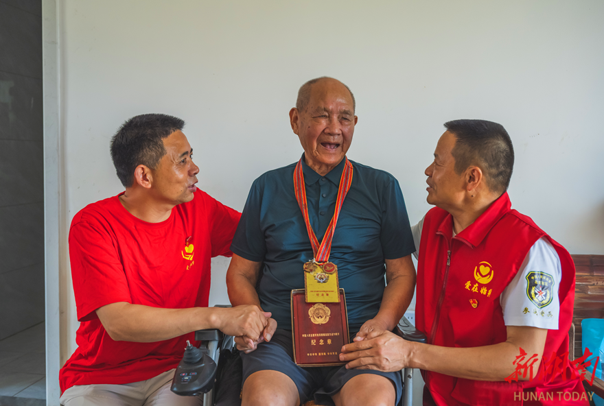 八一建軍節前夕,愛在始終志愿者協會支部組織開展關愛慰問抗美援朝志愿軍老戰士活動,志愿者與志愿軍老戰士同唱一首歌活動。華容縣章華鎮三河村91歲的楊炳凡老爺爺是抗美援朝志愿軍的一名司號員,見到志愿者前來看望他,高興得當場唱起了中國人民志愿軍戰歌,仿佛又回到當年吹沖鋒號的陣地。