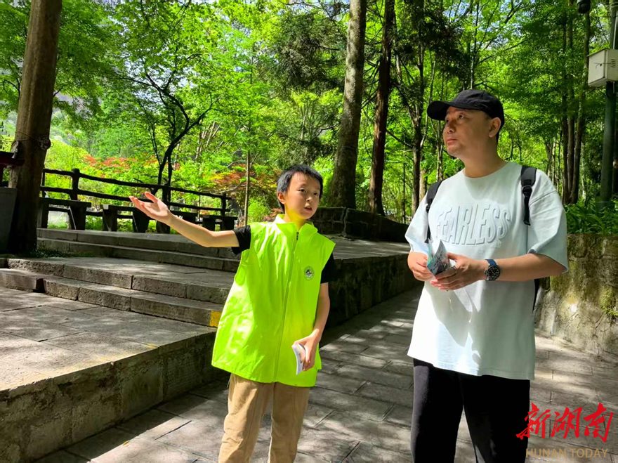 在張家界金邊溪,綠色小衛士熱情向游客科普生物多樣性,小衛士們聚焦大鯢保護,用行動傳遞守護自然的擔當,讓環保種子隨講解播撒。