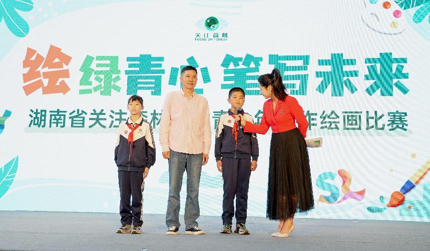 在“湖南省關(guān)注森林活動(dòng)青少年寫作繪畫比賽”發(fā)布環(huán)節(jié),長(zhǎng)沙市望城區(qū)橋驛鎮(zhèn)維新學(xué)校學(xué)生代表胡錦煜、周哲豪與主持人互動(dòng),用童真視角詮釋森林的生態(tài)價(jià)值。知名兒童文學(xué)作家、《小溪流》雜志執(zhí)行主編鄧湘子發(fā)出呼吁,鼓勵(lì)青少年積極報(bào)名參賽,盡情發(fā)揮想象力和創(chuàng)作力,用筆觸與色彩記錄生態(tài)之美。
