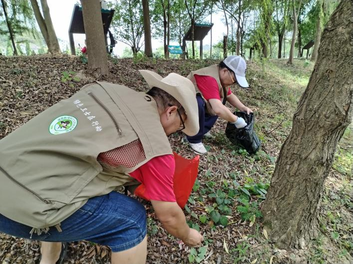 緊接著,志愿者隊伍前往思蒙濕地公園開展凈灘行動。烈日下,大家手持夾鉗、垃圾袋,沿河岸仔細清理蘆葦叢中隱藏的塑料瓶、煙頭及廢棄塑料袋等垃圾,讓濕地環境煥然一新。