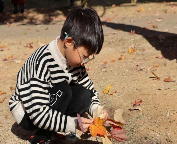 活動伊始,志愿者化身“秋楓向導”,為孩子們派發“尋楓任務卡”,尋找“多彩的葉”與“多變的形”成為小探險家們的目標。在家長陪伴下,孩子們穿梭于楓葉大道,蹲身比對葉片輪廓、舉葉細觀陽光穿透的紋路,林間不時響起“我找到啦”的歡呼,大手小手很快都攥滿了色彩斑斕的“秋之寶藏”。“這片葉子像小手掌,顏色比我的水彩筆還好看!”剛完成任務的劉同學舉著楓葉興奮地說。