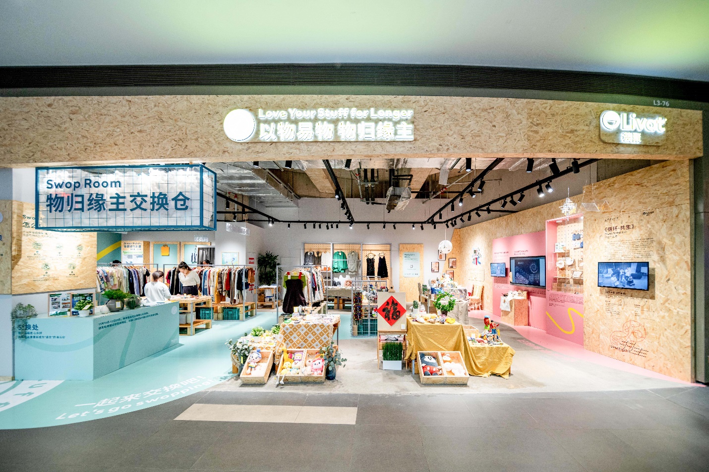 在三樓打造了“物歸緣主倉“,收納近千件閑置好物,包含戶外、運動、家居、服飾、書籍等品類,發起以物易物活動。
