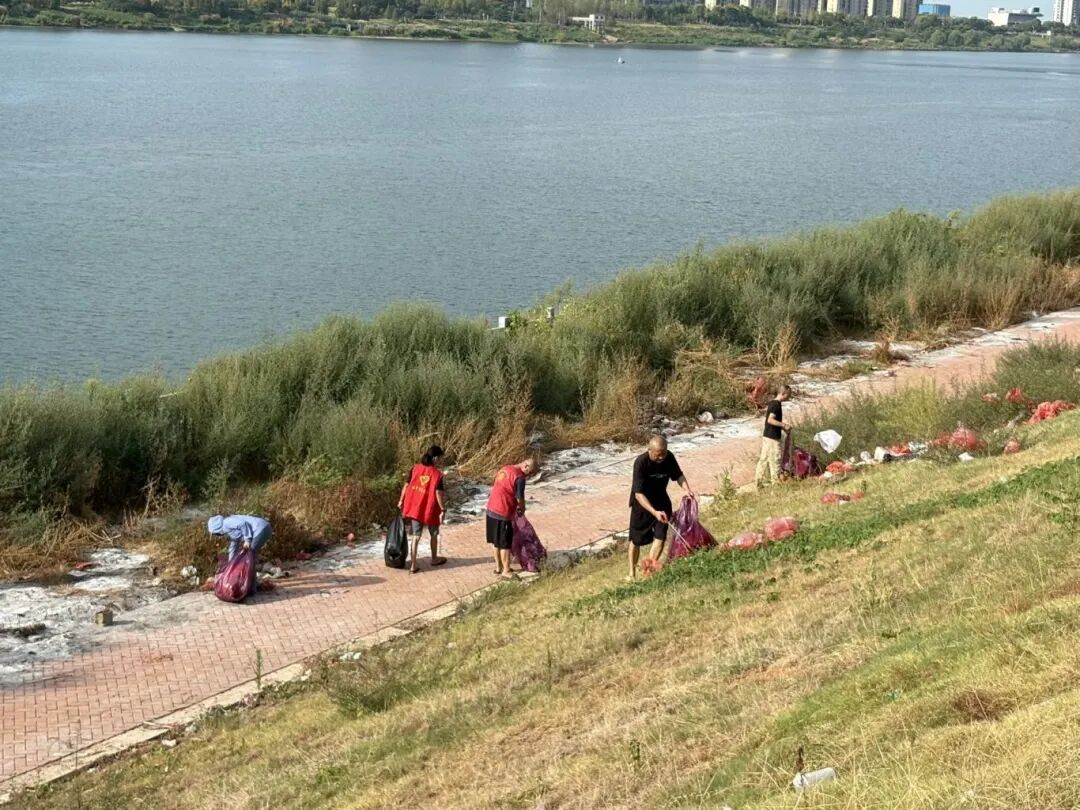 9月11日,湘潭民間河長九華中隊攜手九華街道辦事處、綠色衛士湘潭大隊,組織20余名志愿者前往湘江九華街道竹埠港河段。即便烈日炎炎,志愿者們仍干勁十足:手持夾子、垃圾袋細致清理沿岸垃圾,對可回收物、有害垃圾等分類收納。同時,向過往市民普及“禁漁”政策,傳遞“水資源保護無小事”的理念。