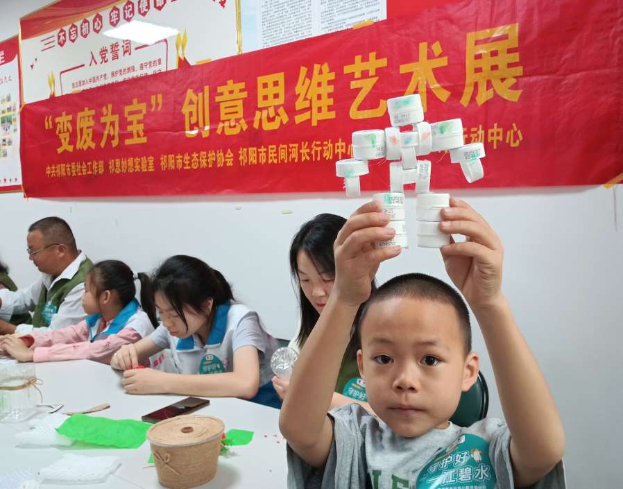 10月10日,一場以“變廢為寶”為主題的少兒藝術創作展在祁陽市協會活動室舉行。活動由祁陽市委社會工作部、市河長辦、市水利局指導,并獲湖南省生態保護聯合會“長江流域‘守護好一江碧水’青少年環保聯合行動小額資助計劃暨財信公益伙伴計劃”支持,由祁陽市生態保護協會聯合市牽手志愿者協會、市河小青行動中心、市民間河長行動中心共同主辦,吸引了36位“大小河長”積極參與。