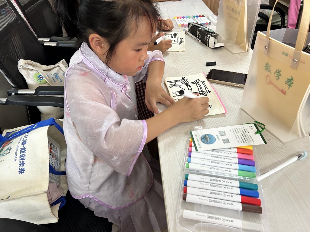 同時,志愿者老師也沒忘記孩子們的暑期安全教育,用通俗易懂的語言普及防溺水知識,提醒大家遠(yuǎn)離危險水域、如何科學(xué)救援。在“繪畫創(chuàng)作”環(huán)節(jié),小天使們拿起彩筆,在筆袋上盡情揮灑創(chuàng)意。有的描繪洪江古商城的青瓦飛檐;有的則描繪了侗族同胞載歌載舞迎接游客的場景,蘆笙、繡球等元素一應(yīng)俱全;還有的將?水廊道的碧波、林間嬉戲的鳥獸與現(xiàn)代新城的高樓同框,用色彩訴說對家鄉(xiāng)生態(tài)美、發(fā)展興的期待。