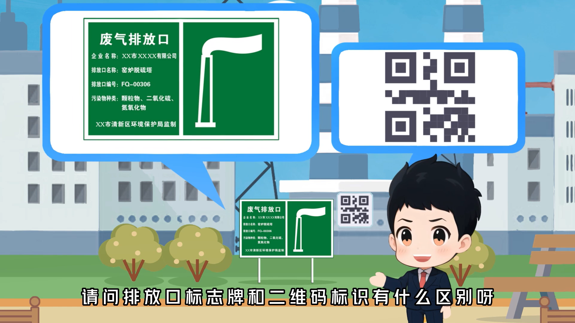 《排污單位污染物排放口二維碼標識技術規范》系列科普動畫③:排放口標志牌和二維碼標識的區別